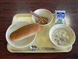 献立は、チーズパン、五目野菜ラーメン、かみかみサラダでした。ラーメンは、野菜たっぷりのヘルシーメニューで、スープもおいしかったです。かみかみサラダは、かんでいるうちに野菜の甘みが出てきました。どちらもおいしくいただきました。