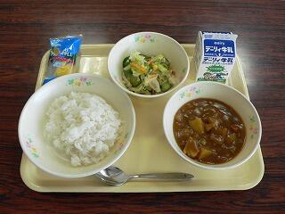 献立は、ポークカレー、日向夏ドレッシングサラダ、フレッシュパインでした。ポークカレーは、ジャガイモやにんじんが柔らかく煮てあり、豚肉の旨味がルーに溶け込んでとてもおいしかったです。サラダは、日向夏のさわやかな甘みが野菜と絡んでとてもさっぱりしていました。デザートのパインも、カレーの後味にとても合っていました。
