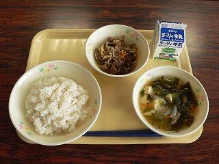 献立は、ビビンバ丼とわかめスープでした。ビビンバ丼は、牛肉の旨味が汁と絡んで、ご飯がとてもおいしく感じました。わかめスープは、わかめの香りがし、たくさんの野菜の甘みを感じるやさしい味でした。おいしくいただきました。