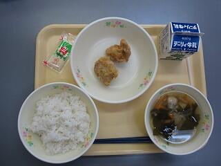 今日の献立は、麦ご飯、チキンなんばん、タルタルソース、ごぼう団子汁です。
