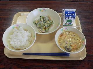 今日の献立は、麦ご飯、炒り豆腐、ごまマヨネーズ和えです。炒り豆腐は、薄味でしたが、体に優しく食べやすかったです。ごまマヨネーズ和えは、野菜がシャキシャキして味もしっかりしていて美味しかったです。今日も美味しくいただきました。