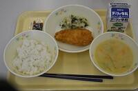 今日の献立は、麦ご飯、鮭フライ、ソース、ごまあえ、じゃがいもの味噌汁です。味噌汁にお魚、ごまあえと、和食の献立でした。鮭フライは、子どもたちにも人気がありました。ごま和えはさっぱりとしていて、美味しかったです。味噌汁も、じゃがいもに、あげ、実もたくさん入っていて美味しかったです。今日も美味しくいただきました。