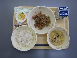 今日の献立は、鶏飯、つぼづけ、五目きんぴら、瀬戸内レモンゼリー、牛乳です。