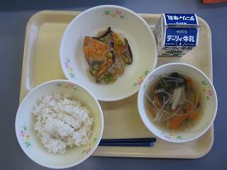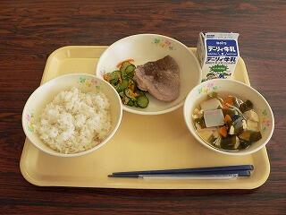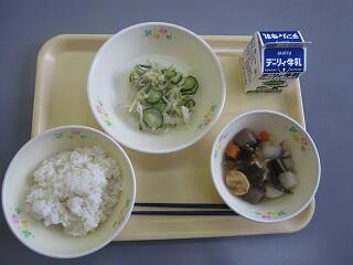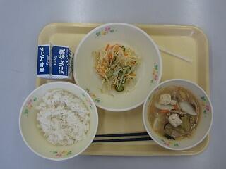 今日の献立は、わかめご飯、豚汁、がね、牛乳です。