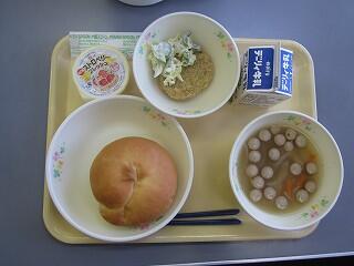 今日の献立は、さばサンド、コンソメスープ、ストロベリーフレッシュゼリー、牛乳です。さばサンドは、さばのカツと野菜のマヨネーズ和えをパンに挟んで食べました。お肉とは違った美味しさがありました。コンソメスープは、小さく切ったソーセージがたくさん入っていたので、ちょっと嬉しかったです。ストロベリーフレッシュゼリーは、甘くて冷たくて美味しかったです。今日も美味しくいただきました。