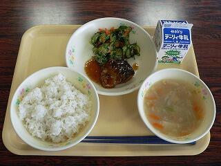 献立は、麦ご飯、牛乳、鯖みぞれ煮、甘酢和え、米粉のだご汁でした。みぞれ煮は、鯖に大根おろしの混ざった甘辛の煮汁がしみこんで、ご飯によく合いました。甘酢和えは、キュウリやわかめが甘酢で和えてあり、具材の甘みを感じました。だご汁は、米粉団子がもちもちで、里芋も柔らかく、さっぱりした味わいでした。おいしくいただきました。