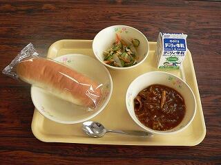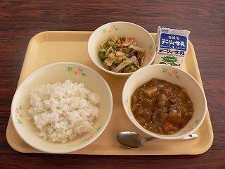 今日は、小林小6年生のリクエスト献立で、たっぷりビーフカレー、牛乳、りっちゃんサラダでした。カレーは、牛肉がたっぷり入っていました。サラダは、程よい酸味があり、カレーライスとの相性も抜群でした。おいしくいただきました。