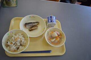 今日は、「小林地産地消の日」メニューでした。かしわのまぜくりは、鶏肉と椎茸が湖畔に混ぜ込んであり、懐かしい味でした。米粉の団子汁は、米粉のお団子が、弾力感があり食べ応えがありました。鰯のおかか煮は味もしっかりしていた、まるごと食べられました今日も美味しくいただきました。