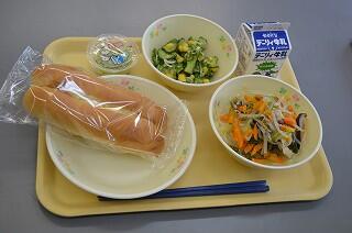 今日の献立は、コッペパン、シーフードチャウダー、フレンチサラダ、牛乳です。