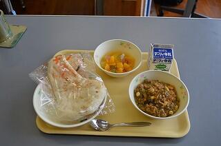 高菜チャーハンは、ウィンナーが入っていて、子どもたち向けの味付けになっていました。スコッチエッグは、食べ応えがありました。田舎汁は、厚揚げなど具材もたっぷりで美味しかったです。十五夜大福は丁度食べやすい大きさでした。今日も美味しくいただきました。