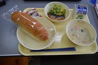 今日の献立は、黒糖パン、パスタ入りブイヤベース、日向夏ドレッシング和え、牛乳です。黒糖パンは、ほんのり甘くて柔らかく美味しかったです。パスタ入りブイヤベースは、小さなアルファベットのパスタがたくさん入っていました。子どもたちが気付くと喜びますね。魚介のスープで、イカ、えび、ウィンナーが美味しかったです。日向夏ドレッシング和えは、ツナ、きゅうり、コーンが入っていて爽やかな美味しさでした。