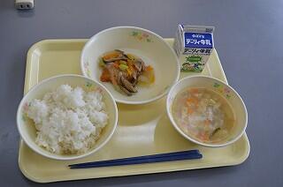 今日の献立は、麦ご飯、魚の野菜あんかけ、米粉のだご汁、牛乳です。魚の野菜あんかけは、魚がかりっとして少し硬めでしたので、野菜あんをかけることで、食べやすく美味しかったです。米粉のだご汁は、米粉の団子がお餅のようで、雑煮みたいでした。温かく美味しかったです。