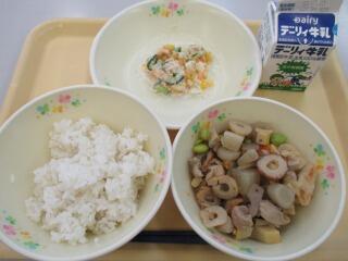 7/11(月)のメニューは『筑前煮』『ツナサラダ』『麦ごはん』『牛乳』でした。