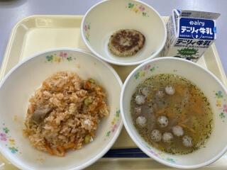 7/12(火)のメニューは『つくね』『チキンライス』『コンソメスープ』『牛乳』でした。