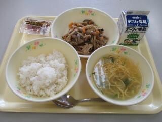 7/20(水)のメニューは『鶏飯の具』『五目きんぴら』『麦ごはん』『つぼ漬け』『牛乳』でした。