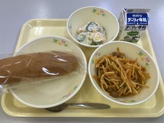 8/25(木)のメニューは『ポテトサラダ』『コッペパン』『スパゲティナポリタン』『牛乳』でした。