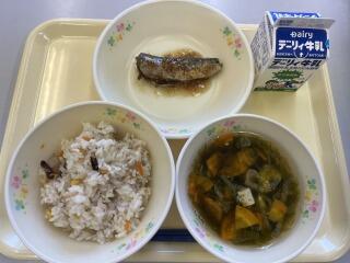 8/30(火)のメニューは『あおさ汁』『いわしおかか煮』『西諸っ子ごはん』『牛乳』でした。