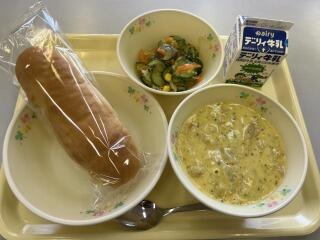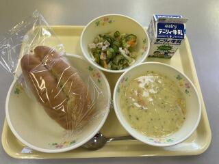10/20(木)のメニューは『コロコロサラダ』『マヨネーズパン』『コーンスープ』『牛乳』でした。