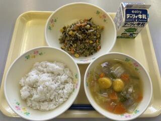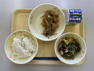 10/19(水)のメニューは『もずくスープ』『チキンチキンごぼう』『麦ごはん』『牛乳』でした。