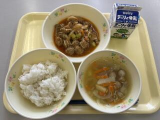 10/21(金)のメニューは『コンソメスープ』『煮込みミートボール』『麦ごはん』『牛乳』でした。