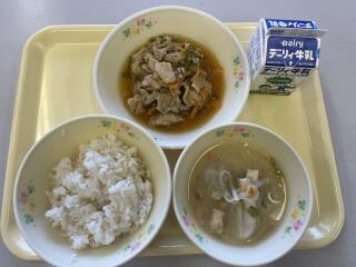 11/16(水)のメニューは『千切り大根のみそ汁』『豚肉のしょうが焼き』『麦ごはん』『牛乳』でした。