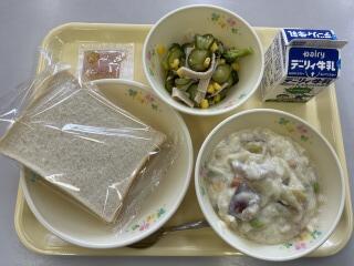 11/17(木)のメニューは『ブロッコリーサラダ』『食パン』『秋の味シチュー』『りんごジャム』『牛乳』でした。
