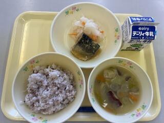 11/25(金)のメニューは『さつま汁』『さばゆずみそ煮』『甘酢和え』『十二穀ごはん』『牛乳』でした。