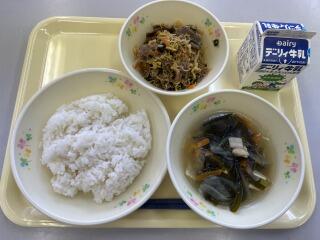 11/30(水)のメニューは『ビビンバ丼の具』『麦ごはん』『わかめスープ』『牛乳』でした。