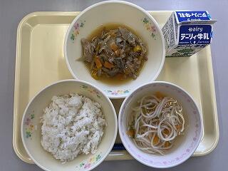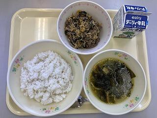 8/29(火)のメニューは『ビビンバ丼の具』『わかめスープ』『麦ごはん』『牛乳』でした。