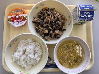 8/30(水)のメニューは『鶏飯の具』『鶏肉と大豆のひじき煮』『ごはん』『アセロラゼリー』『牛乳』でした。