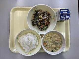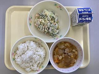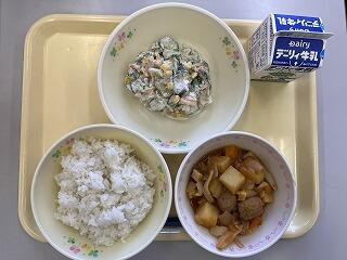 甘酢煮は、酸味と甘味が食欲をそそり、鶏肉と玉ねぎの食感がアクセントになっていておいしくいただきました。「卵サラダがおいしかった~!」と児童が喜んで教えてくれました♪