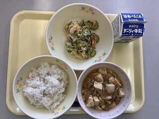 11/17(金)のメニューは『麻婆豆腐』『中華サラダ』『麦ごはん』『牛乳』でした。
