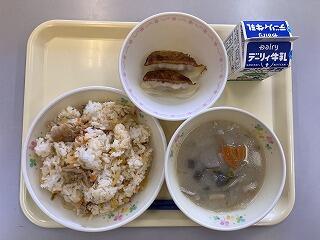 11/21(火)のメニューは『ギョーザ』『キムタクごはん』『豚汁』『牛乳』でした。