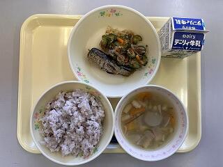 11/24(金)のメニューは『のっぺい汁』『いわし生姜煮』『おかか和え』『十二穀ごはん』『牛乳』でした。