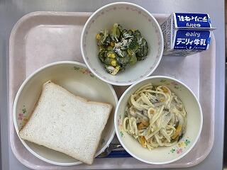 5/16(木)のメニューは『ブロッコリーサラダ』『食パン』『スープスパゲティ』『牛乳』でした。