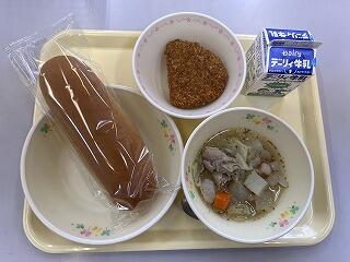 12/5(木)のメニューは『かぼちゃコロッケ』『ポトフ』『黒糖パン』『牛乳』でした。