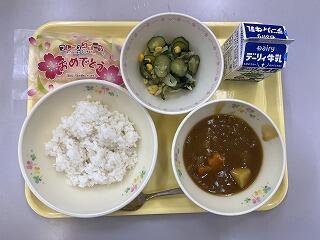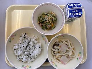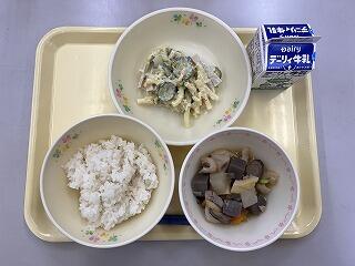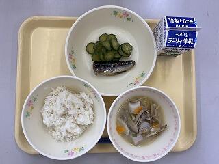 麦ごはん、豚汁、いわしの生姜煮、きゅうりのスタミナ漬け