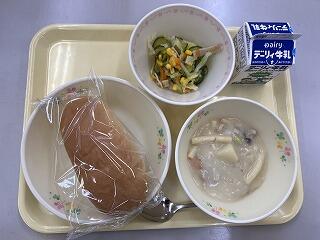 コッペパン、豆乳のクリーム煮、春キャベツのサラダ