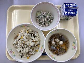 高菜チャーハン、もずくスープ、ごぼうサラダ