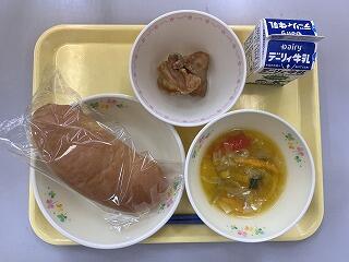コッペパン、カラフル野菜スープ、鶏のレモンソース