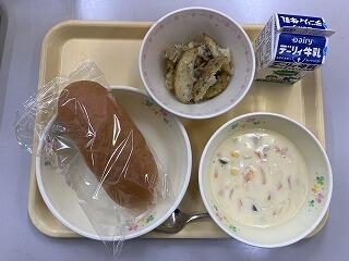 コッペパン、コーンポタージュ、ジャーマンポテト