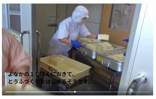 今日は東方学校給食センターに届いた「呉汁」に使う「とうふ」についての動画がありました♪(スクリーンショットで紹介します)
