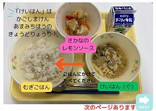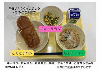 東方学校給食センターから、今日の給食の動画が届いていました♪(スクリーンショットで紹介します)