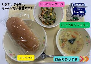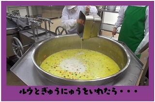 今日は東方学校給食センターの配膳写真の2枚目で、パンプキンシチューの調理工程動画がありました(*^▽^*)