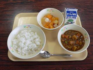 今日の献立は、南小学校のリクエスト献立でした。子どもたちも大好きなカレーとフルーツポンチの組み合わせです。カレーは、こくがあっておいしく、フルーツポンチは見た目もカラフルで、カレーの後味にもよく合っていました。