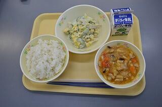 今日の献立は、麦ご飯、鶏肉と野菜の甘酢煮、卵サラダ、牛乳です。鶏肉と野菜の甘酢煮は、鶏肉が柔らかく感じました。甘酢だれが野菜と絡んで筍の食感もよかったです。椎茸や人参、ピーマンなど具材もたっぷりでした。たまごサラダは、卵たっぷり感がありました。今日も美味しくいただきました。