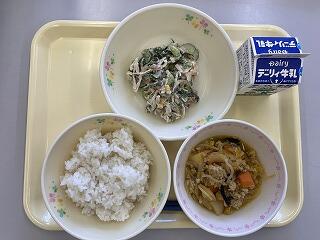 11/7(火)のメニューは『おでん』『三色和え』『麦ごはん』『牛乳』でした。