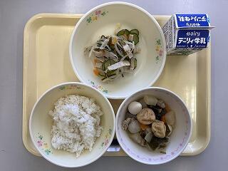 かぼちゃのそぼろ煮、鉄ちゃんサラダは、塩味、甘味などバランスのとれたメニューでおいしくいただきました。今日は3,4年生で味覚の授業があったので、勉強したことを給食を食べながら再確認できたと思います。旬の素材のおいしさを感じました。
