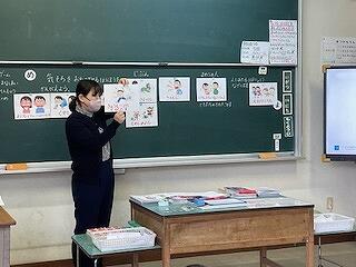 3年生は、国語科で漢字の意味の学習をしていました。例えば、「はははははじょうぶです。」を意味が伝わるように漢字をつかって表したり、キシャ(記者、汽車)、カジ(家事、火事)など同音異義語を使い分けて文をつくったりしていました。外国語活動では世界のいろいろなグリーティングカードをみながら、誰に贈りたいかを話し合っていました。(かぞく~!)と発言する声が多かったです。