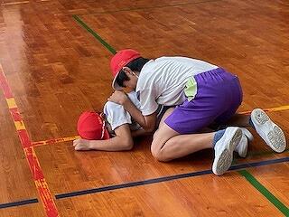 3年生は体育館でボール運びリレーをしていました。「がんばれ~!」と自分のチーム関係なく応援する姿がみられました。